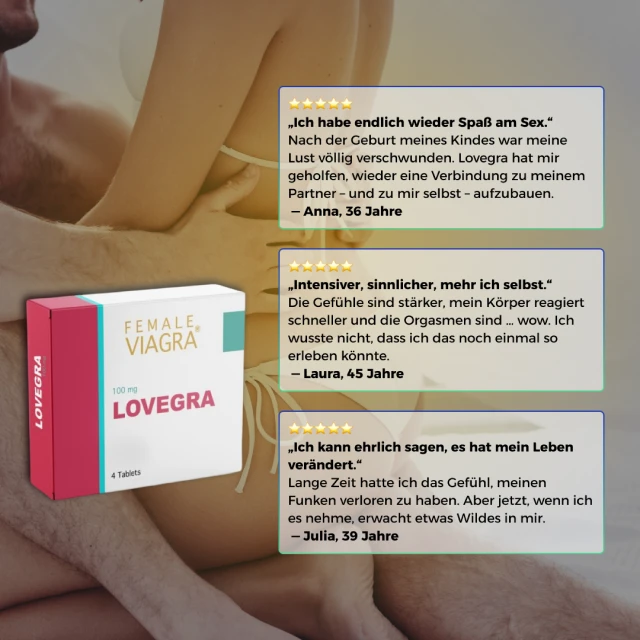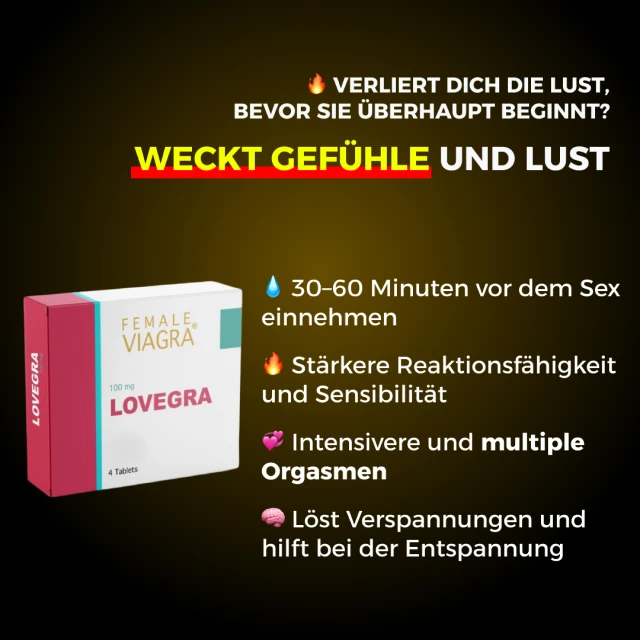 Lovegra ist die sogenannte weibliche Viagra, die speziell entwickelt wurde, um das sexuelle Erlebnis von Frauen zu verbessern. Sie enthält 100 mg Sildenafil, das die Durchblutung der Genitalien erhöht und so Empfindlichkeit, Erregung und die Qualität des Orgasmus verbessert. Lovegra wird häufig von Frauen verwendet, die Schwierigkeiten haben, sexuelle Erregung zu erreichen oder wenig Lust auf Sex verspüren.